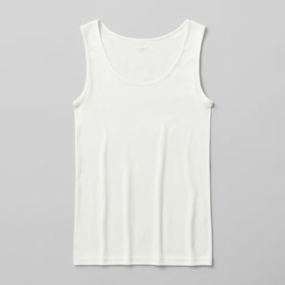 ・“下着っぽさゼロ”で、あえて見せるコーデに活躍する綿100%タンクトップをチョイス