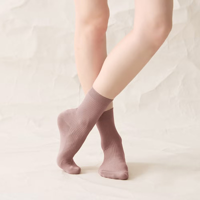 éCALMEリブ柄 クルー丈ソックス